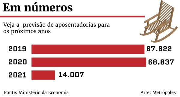A debandada continua em 2020. A quantidade de aposentadorias irá crescer 1,5% no próximo ano. O volume chegará a 68,8 mil desligamentos. Os dados fazem parte de um levantamento do Ministério da Economia feito a pedido do Metrópoles.