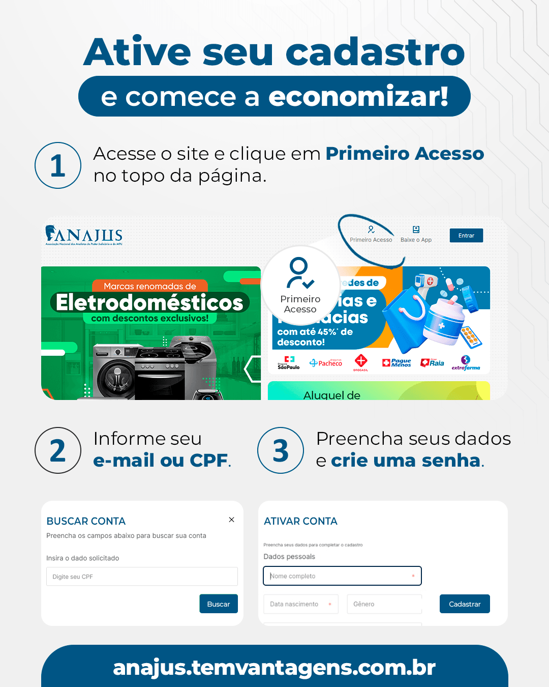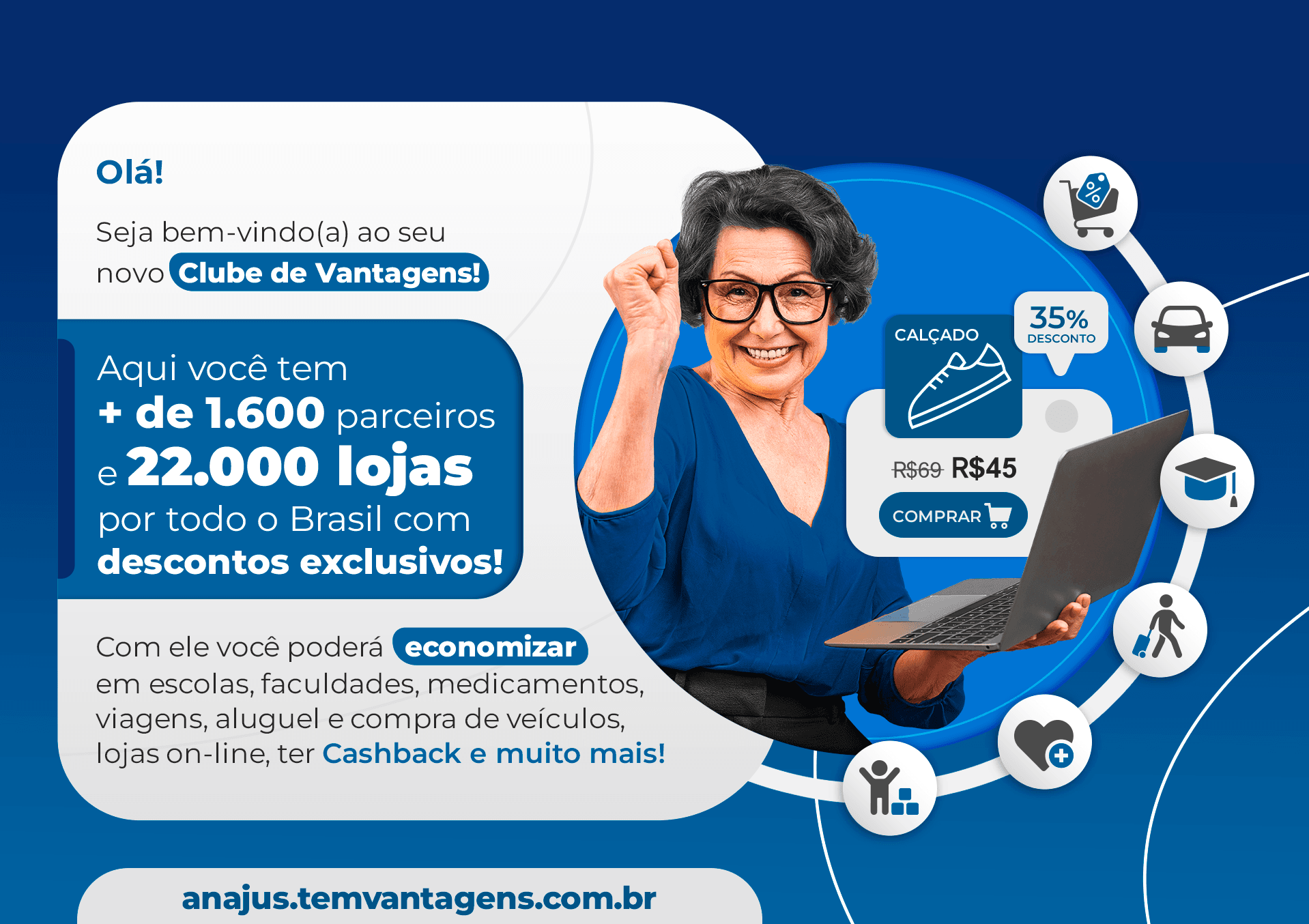 Pronto, agora é só desfrutar dos benefícios de seu Clube de Vantagens ANAJUS. *Qualquer dúvida ou informação fale conosco pelo nosso WhatsApp: clicando aqui, ou nos envie um e-mail para: