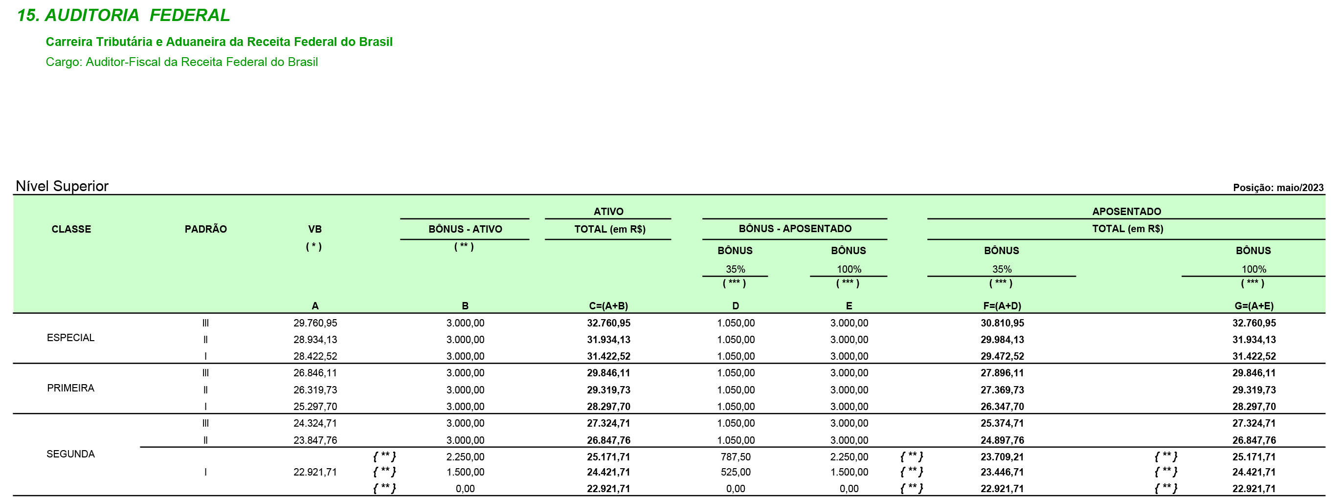 Você sabia que essa informação NÃO É VERDADEIRA?Conforme dados do Portal da Transparência Poder Executivo, a remuneração da Receita Federal, desde 2023, é a que segue abaixo.