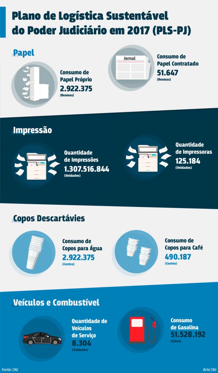 Essas e outras informações relativas à logística sustentável no Poder Judiciário brasileiro podem ser acessadas no Painel Socioambiental, ferramenta desenvolvida pelo Departamento de Pesquisas Judiciárias do Conselho Nacional de Justiça (DPJ/CNJ).